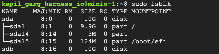 Attach the disk device name to the VM using sudo lsblk. For example: