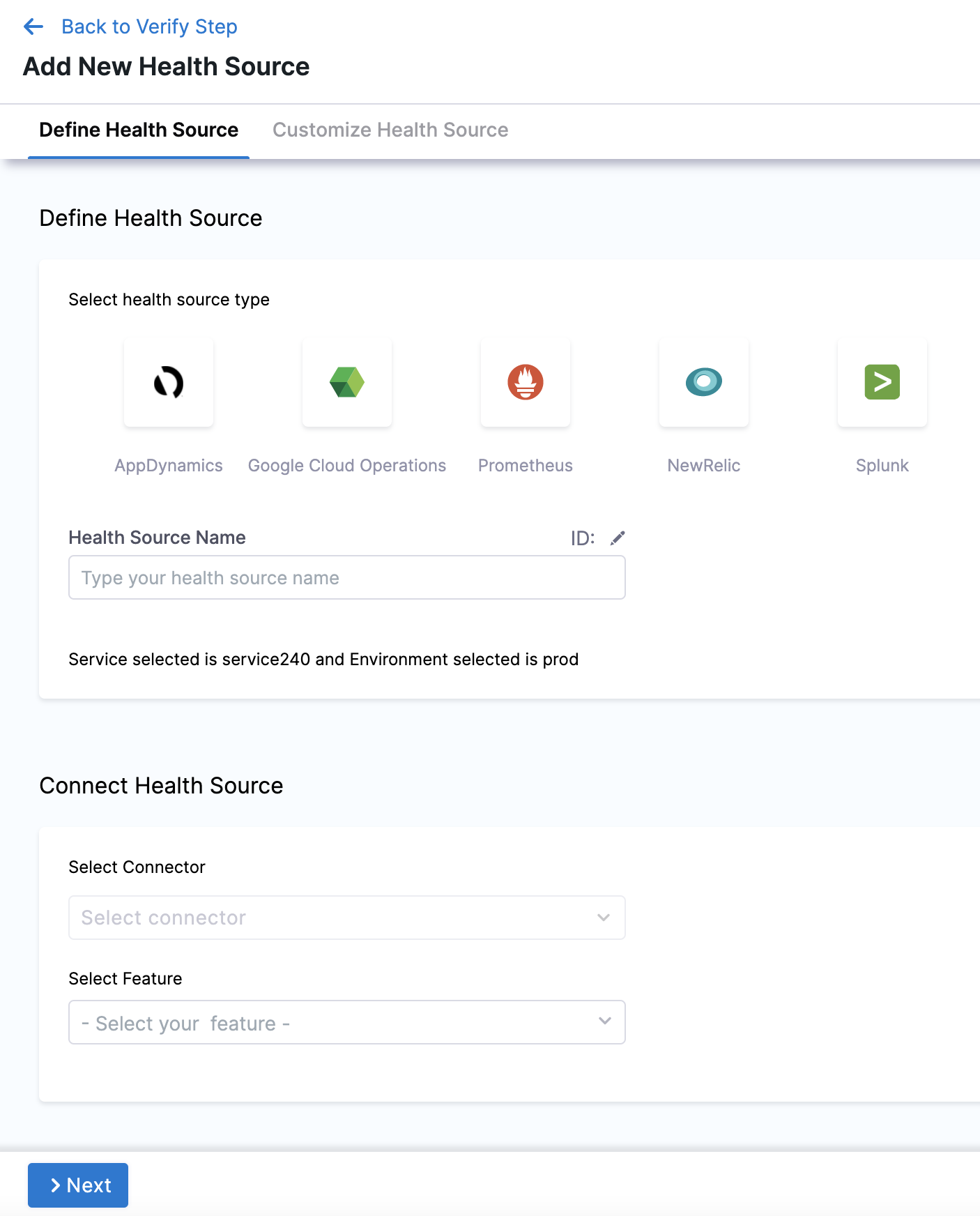 - Click Next. The Customize Health Source settings appear.