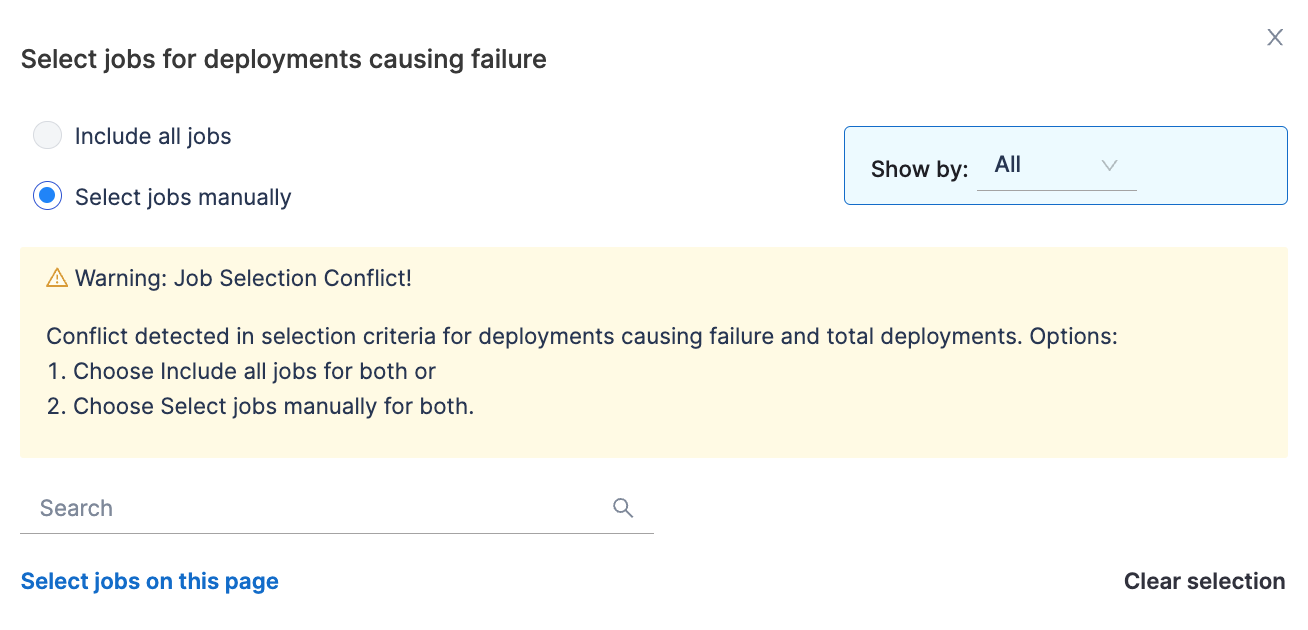 Define how change failure rate should be tracked: - Jobs Started: Tracks change failure rate based on the initiation of deployment pipelines.