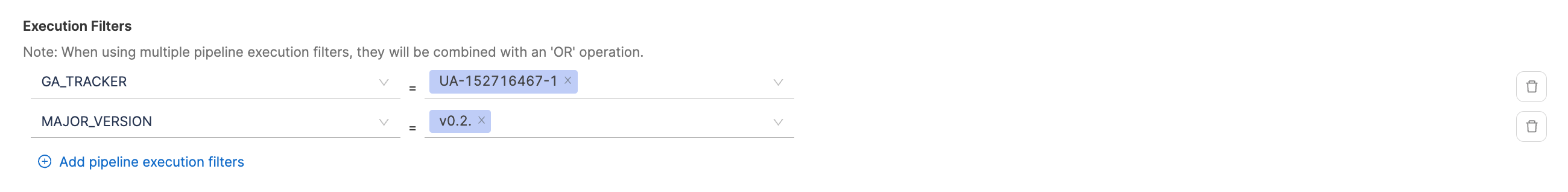 Refine the calculation by specifying detailed filters. This filters pipelines that should contribute to the change failure rate calculations. - Filters: