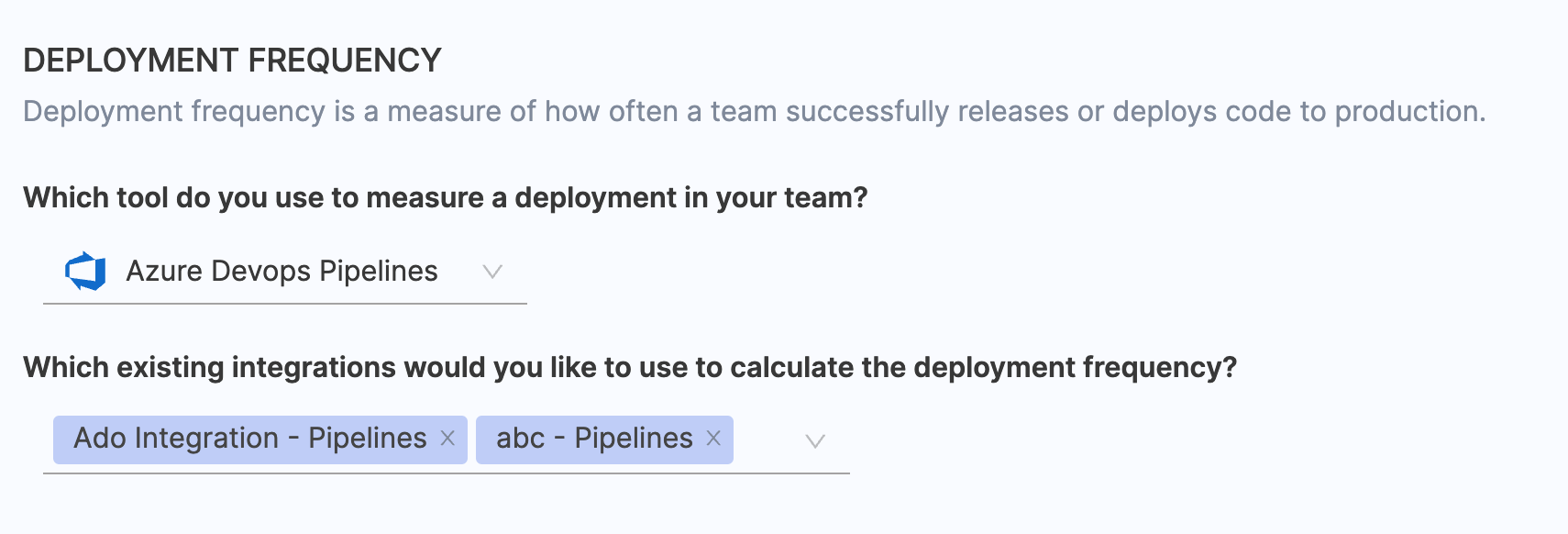- Select the relevant Azure DevOps Pipelines integrations that you wish to use for calculating change failure rate.