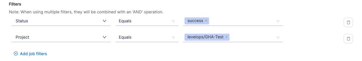 - Example: Status = FailureANDProject = github-org/repository-name.