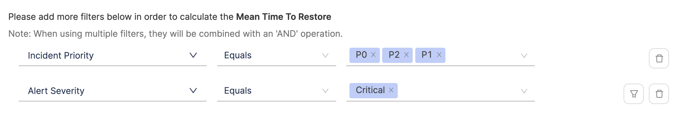 - Example: Status = FailedANDEnvironment = Production.