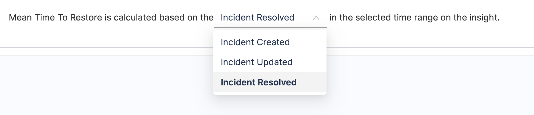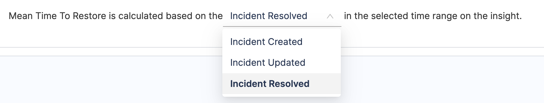 Define how deployments causing failure should be tracked: - Incident Resolved: Tracks failure based on when incident type tickets are resolved (e.g., status changes to Closed).