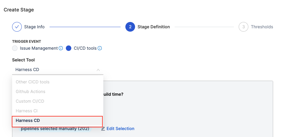 - Define the Stage Trigger Event (e.g., Issue Management) and map the stage to statuses in your issue management system.