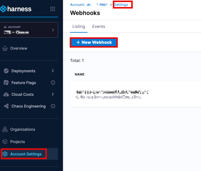 Account Settings → Account-level Resources → Webhooks → New Webhook