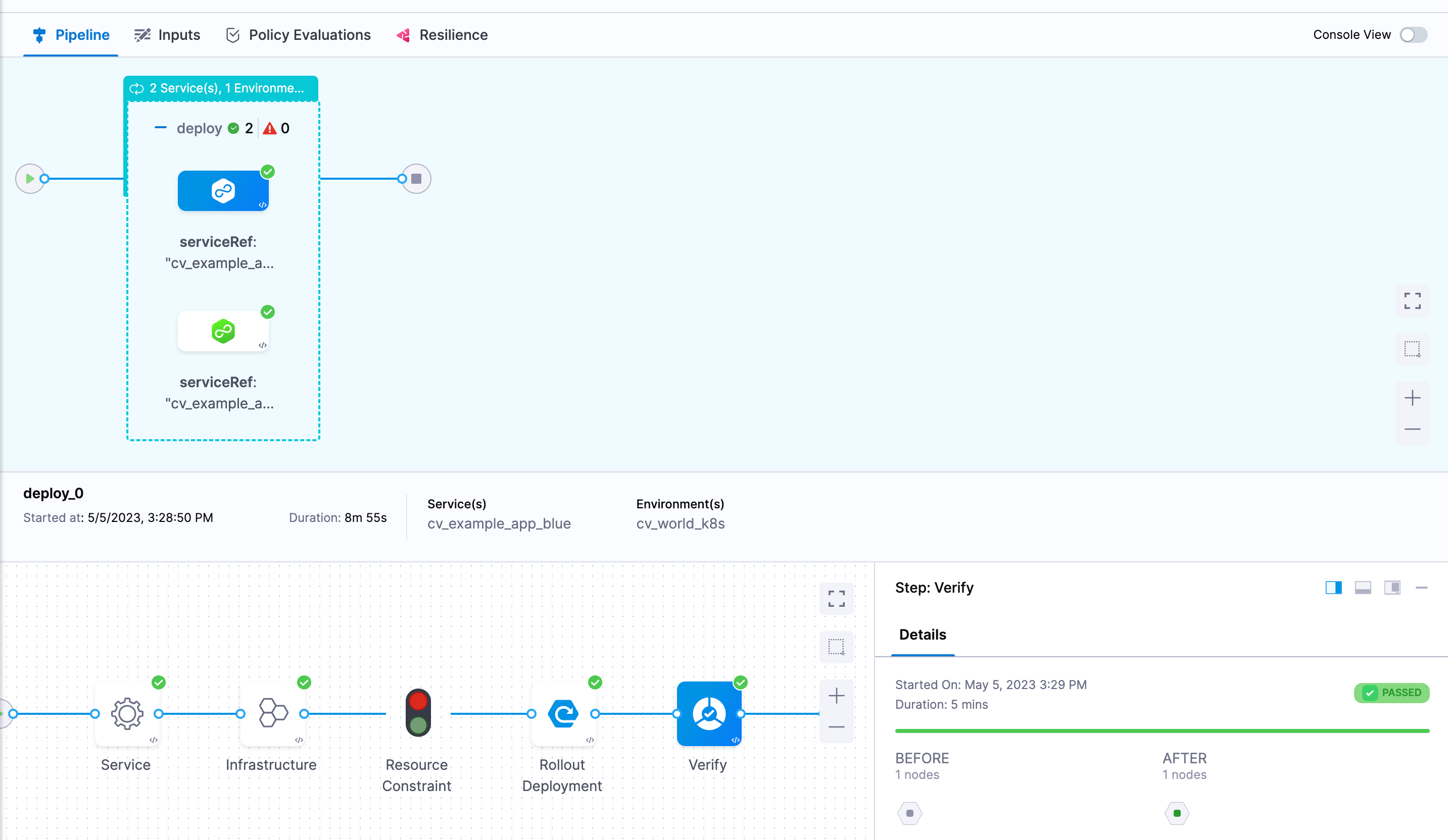 If everything has been configured correctly you should be able to deploy your services and the CV step should verify their health based on the query you provided.