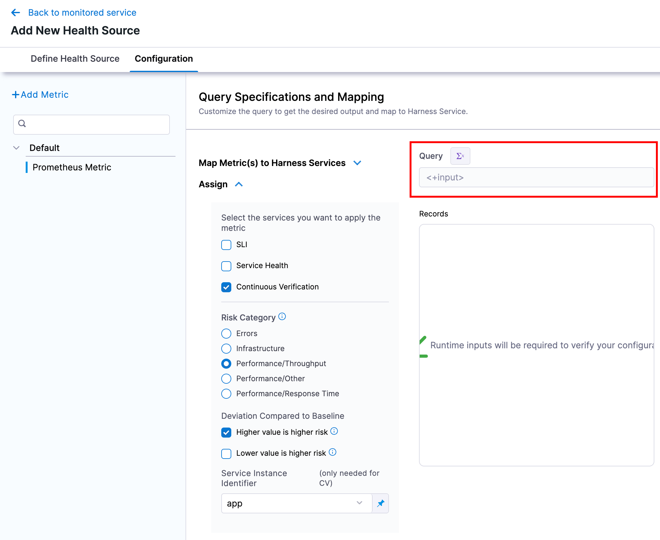 The example above used prometheus, but the same thing can be achieved for other types of health sources. Just be sure and use runtime inputs for your queries.