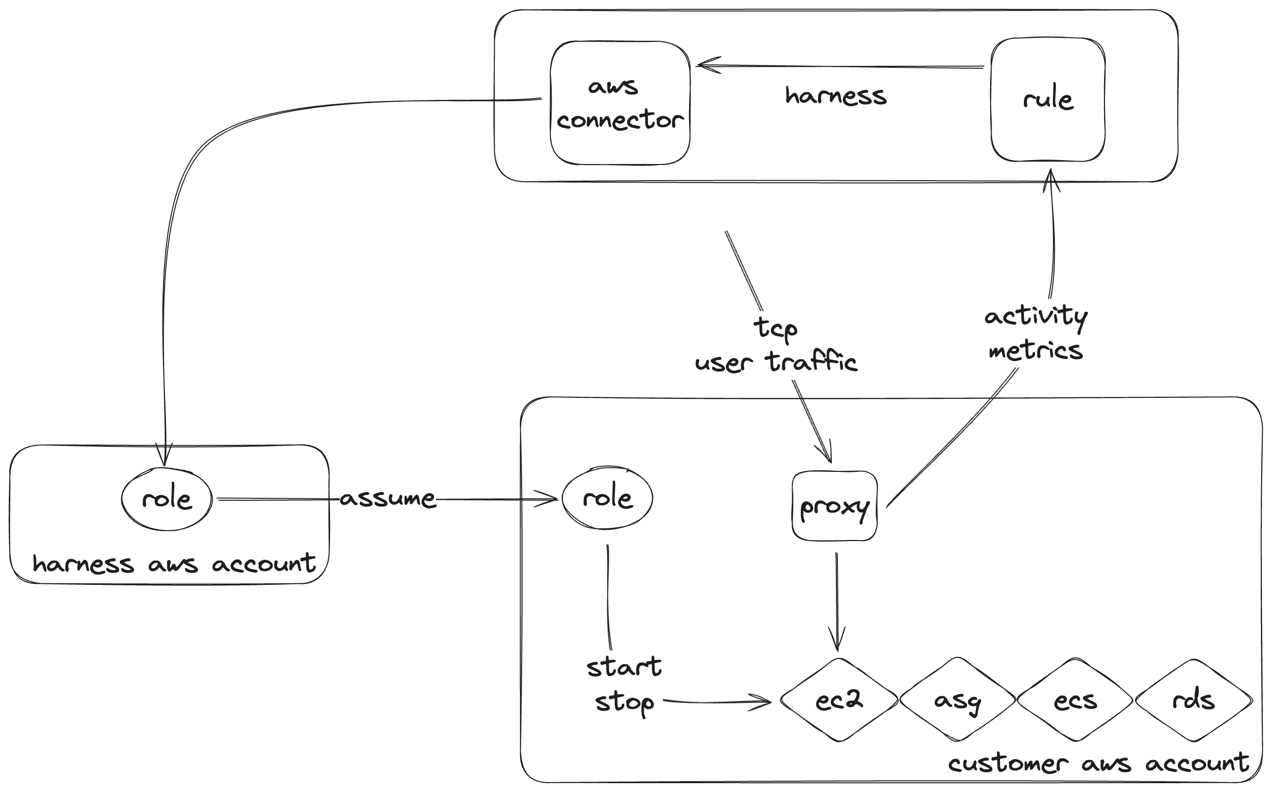 Auto stopping in AWS enables you to spin down EC2 instances, RDS databases, ASGs, and ECS Services. You can do this either by monitoring traffic with an ALB or proxy, or by creating defined schedules of uptime and downtime.