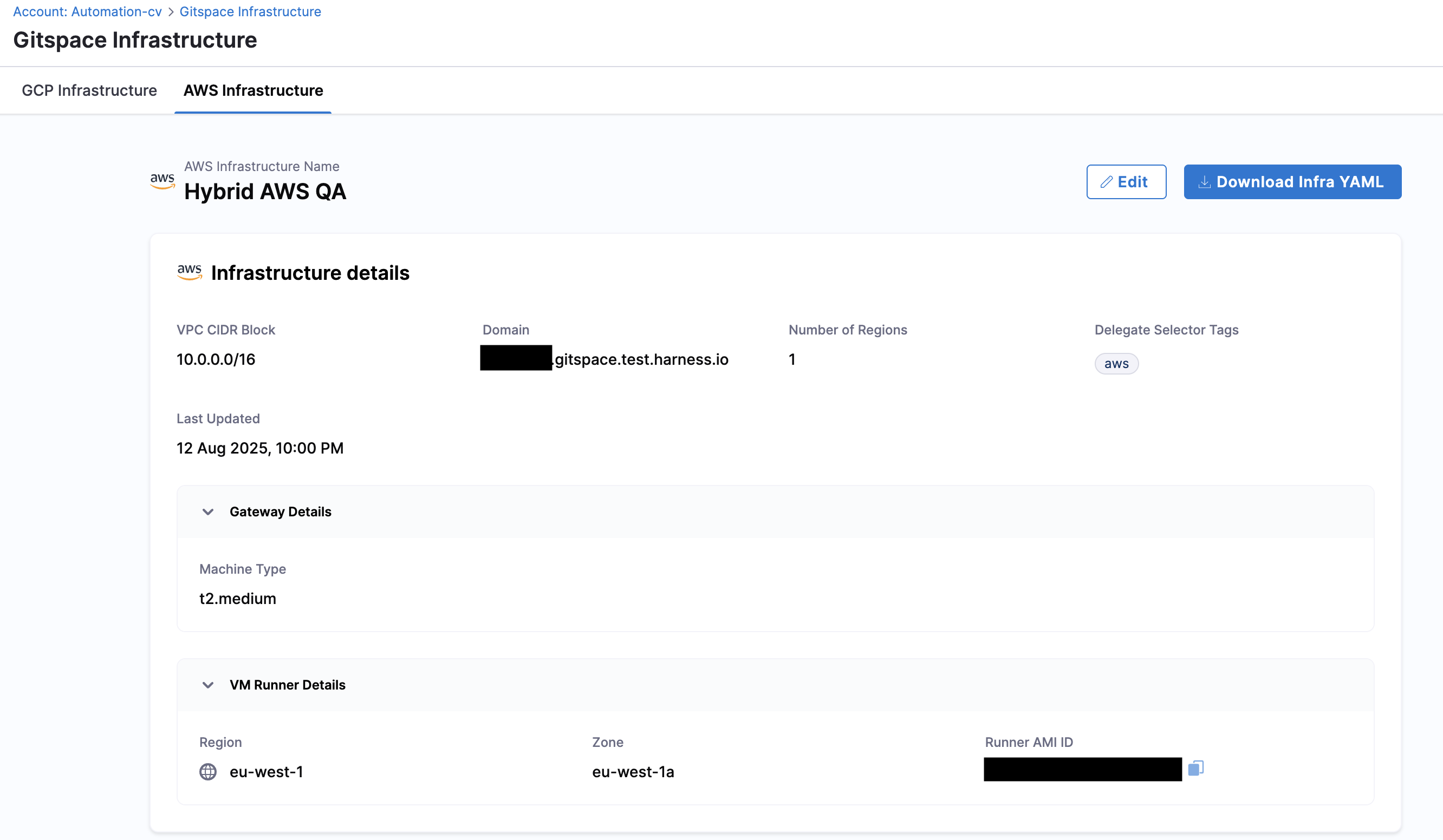 - AWS infrastructure support for Self-Hosted Gitspaces